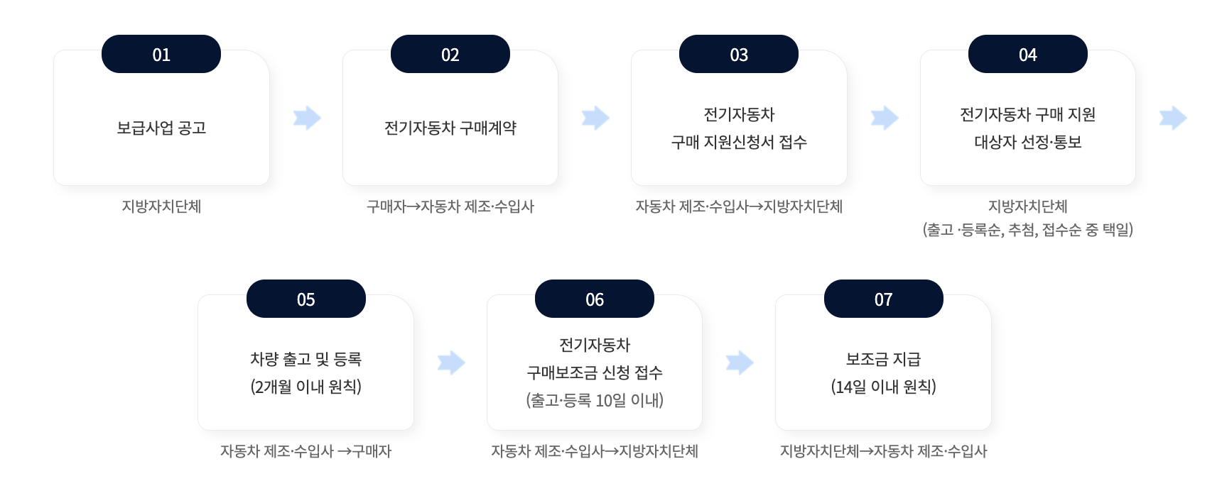 ์ ๊ธฐ์ฐจ ๋ณด์กฐ๊ธ์ ๊ฐ์ธ์ด ์ง์ ์ ์ฒญํ์ง ์๊ณ , ์ฐจ๋ ์ ์กฐ์ฌ ๋๋ ์์ ์ฌ๋ฅผ ํตํด ์ง์์ฒด์ ์ ์ํ๋ ๋ฐฉ์์ผ๋ก ์งํ๋ฉ๋๋ค. ์ ์ฒญ ๋จ๊ณ๋ณ๋ก ์์๋ณผ๊ฒ์.