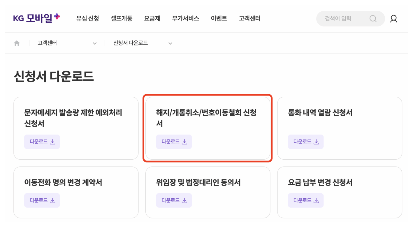 KG๋ชจ๋ฐ์ผ ํด์ง์ ์ฒญ์ ์์ฑ ์๋ น
