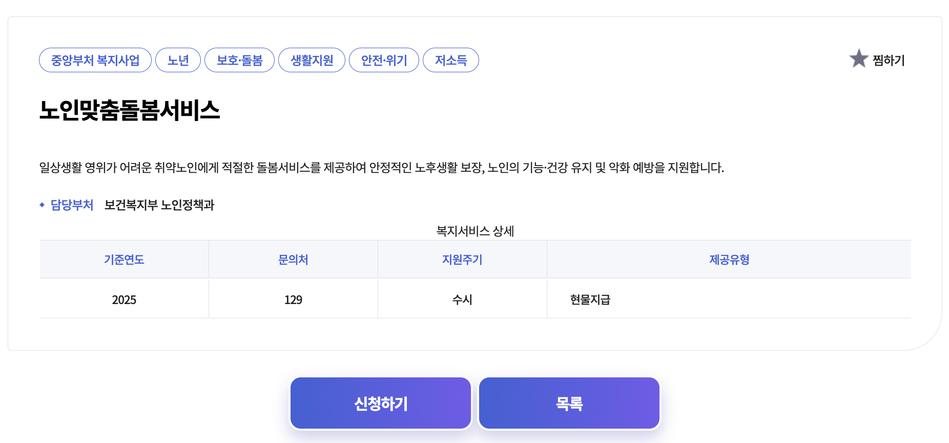 - ์จ๋ผ์ธ ์ ์ฒญ: ๋ณต์ง๋ก ์ ์ → ๋ณต์ง์๋น์ค ์ ์ฒญ → ๋ ธ๋ → ๋ ธ์ธ๋ง์ถค๋๋ด์๋น์ค ์ ํ