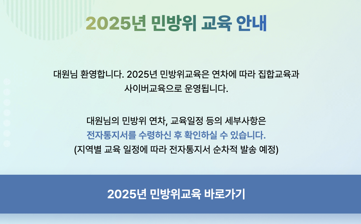 2025 ๋ฏผ๋ฐฉ์œ„ ๊ต์œก ๋ฐ”๋กœ๊ฐ€๊ธฐ