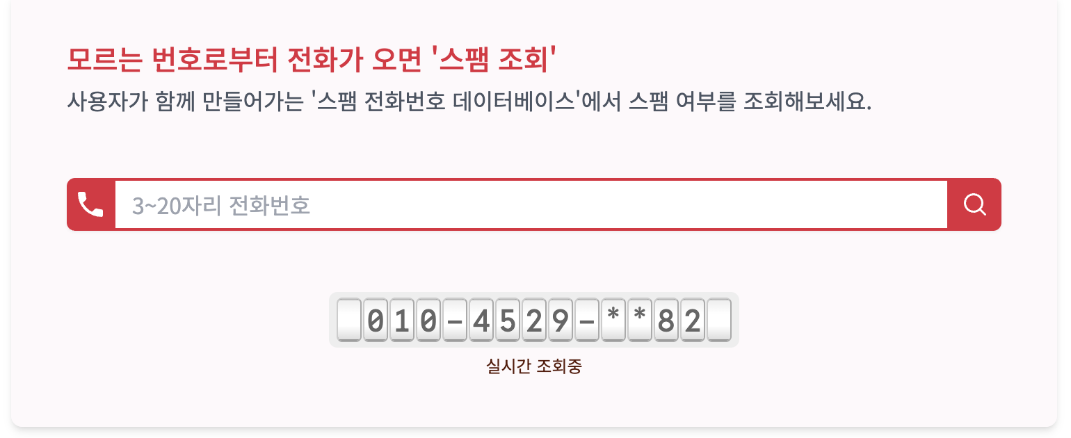 ‘๋์ฝ’์ ์คํธ ์ ๊ณ ๋ฐ์ดํฐ๋ฅผ ๊ธฐ๋ฐ์ผ๋ก, ๋ฒํธ๊ฐ ๊ด๊ณ ์ฉ์ธ์ง ํน์ ๋ณด์ด์คํผ์ฑ ์์ฌ ๋ฒํธ์ธ์ง ์ฌ์ฉ์ ํํ์ ์ ๊ณตํฉ๋๋ค.