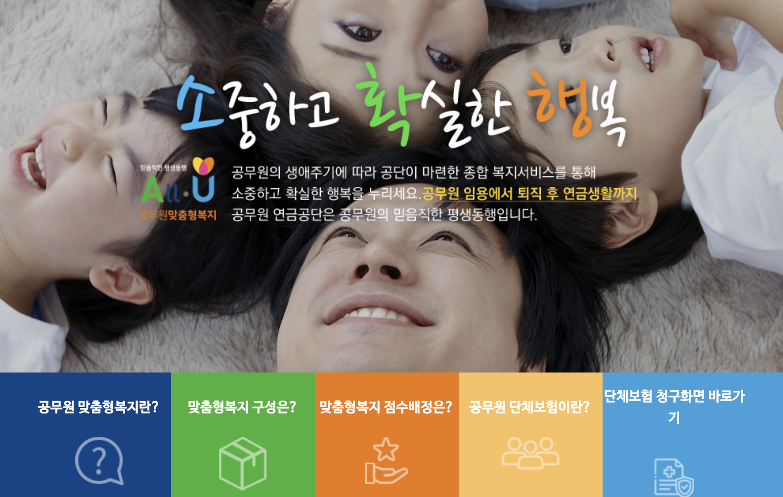 ๊ต์ง์ ๋ณต์งํฌํ์ ๊ณต๋ฌด์์ฐ๊ธ๊ณต๋จ ๋ง์ถคํ ๋ณต์งํฌํธ์ ๊ธฐ๋ฐ์ผ๋ก ์ด์๋ฉ๋๋ค. ์ ๊ตญ์ ๊ต์ง์์ ๊ฐ์ธ ์ธ์ฆ์ ํตํด ๋ก๊ทธ์ธ ํ ๋ณต์งํฌ์ธํธ๋ฅผ ํ์ธํ๊ณ ์ฌ์ฉํ ์ ์์ต๋๋ค.
