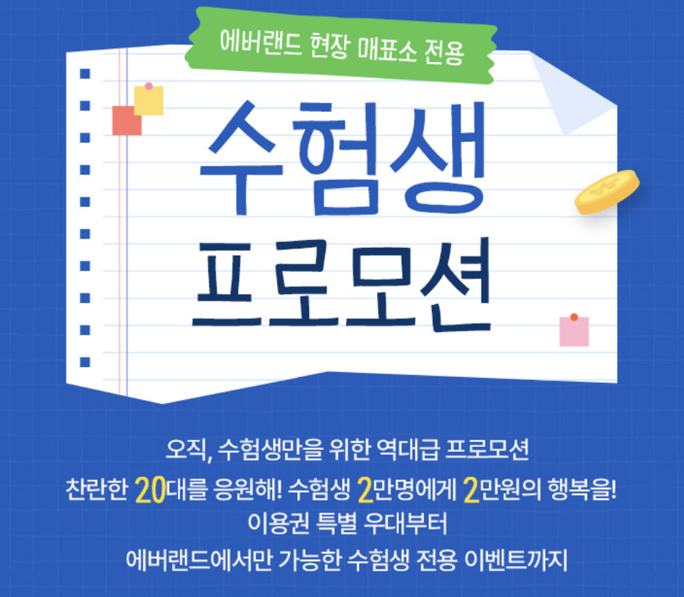 ์ํ์ ๋ณธ์ธ์ ์๋ฒ๋๋ ์ข ์ผ๊ถ์ 2๋ง ์์ ๊ตฌ๋งคํ ์ ์์ต๋๋ค. ์ ์๊ฐ ๋๋น ์ฝ 70% ํ ์ธ๋๋ ๊ธ์ก์ผ๋ก, ์ํ์๋ค์๊ฒ ๊ฐ์ฅ ์ธ๊ธฐ๊ฐ ๋์ ํํ์ ๋๋ค.