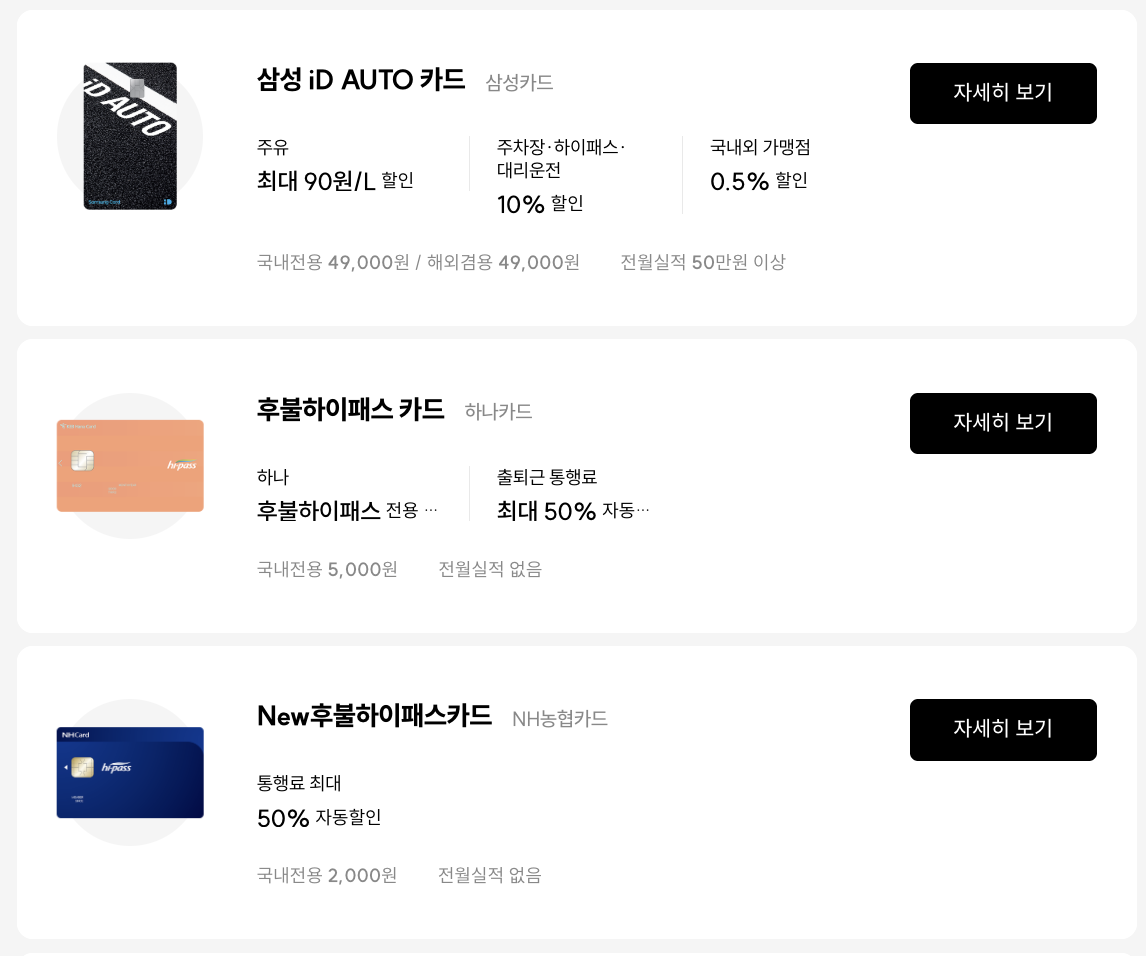 ํ๋ถ ํ์ดํจ์ค์นด๋ ํํ ๋น๊ต ์์ธํ ๋ณด๊ธฐ