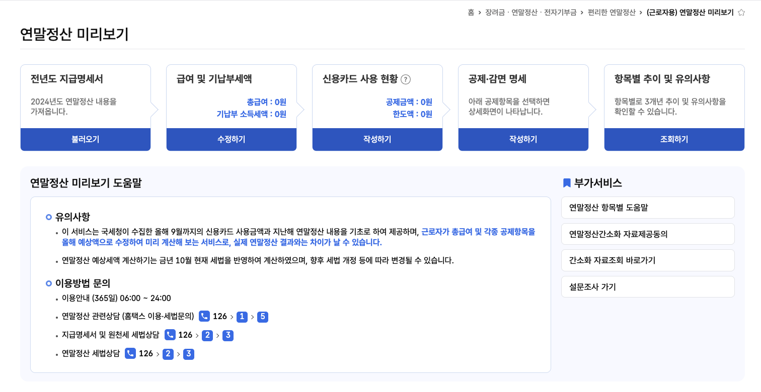 2026 ์ฐ๋ง์ ์ฐ์ 2025๋ ์ง์ถ๋ด์ญ์ ๊ธฐ๋ฐ์ผ๋ก ์งํ๋๋ฉฐ, ํ๊ธ๊ธ์ ์ต๋ํํ๊ธฐ ์ํด์๋ ๋ฏธ๋ฆฌ๋ณด๊ธฐ ์๋น์ค ํ์ฉ์ด ํ์์ ๋๋ค. ๊ตญ์ธ์ฒญ์ ๋งค๋ 10์ ๋ง ํํ์ค์์ ๋ฏธ๋ฆฌ๋ณด๊ธฐ๋ฅผ ์ ๊ณตํ๋ฉฐ, ์ด๋ฅผ ํตํด ์์ ํ๊ธ์ก๊ณผ ๊ณต์ ์ก์ ํ์ธํ ์ ์์ต๋๋ค.