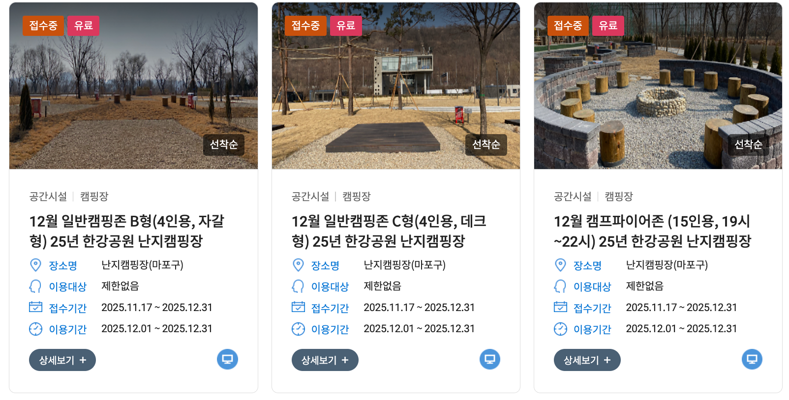 2025 ๋‚œ์ง€์บ ํ•‘์žฅ ๋ฐ”๋ฒ ํ์กด ์ด์šฉ์š”๊ธˆ