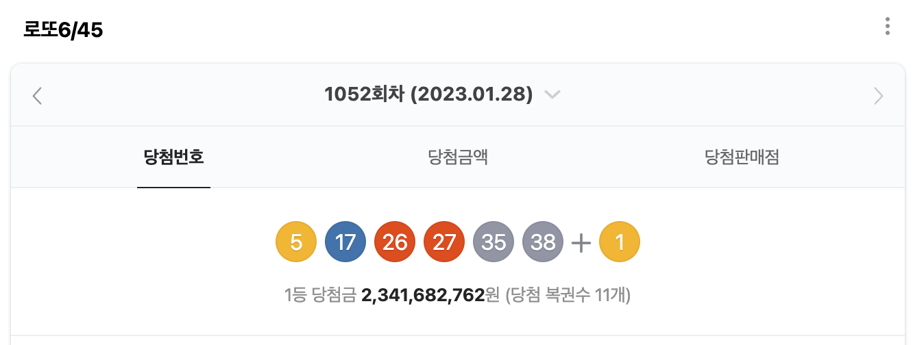 1052ํšŒ ๋กœ๋˜ ๋‹น์ฒจ๋ฒˆํ˜ธ๋Š”