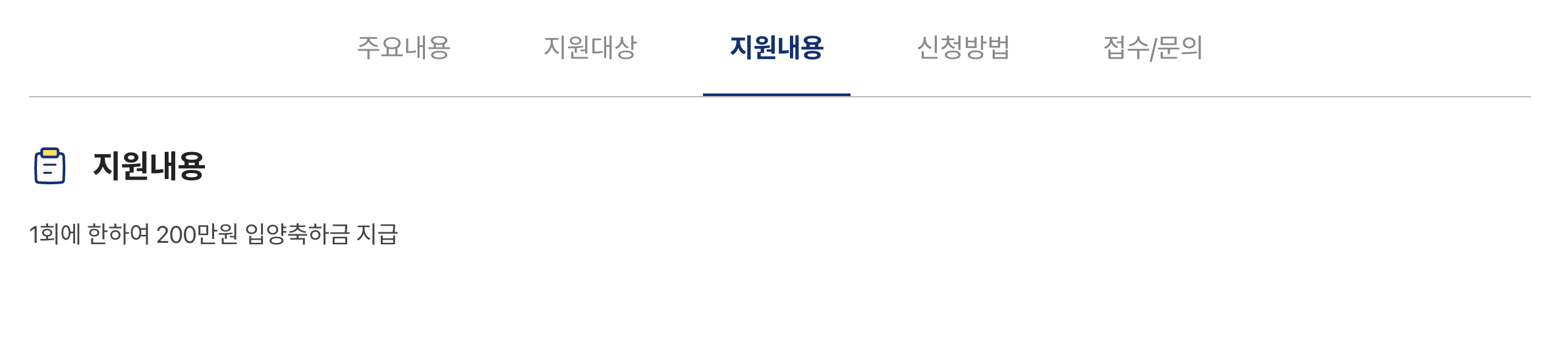 μ§€μ›λ‚΄μš© 1νšŒμ— ν•œν•˜μ—¬ 200λ§Œμ› μž…μ–‘μΆ•ν•˜κΈˆ μ§€κΈ‰