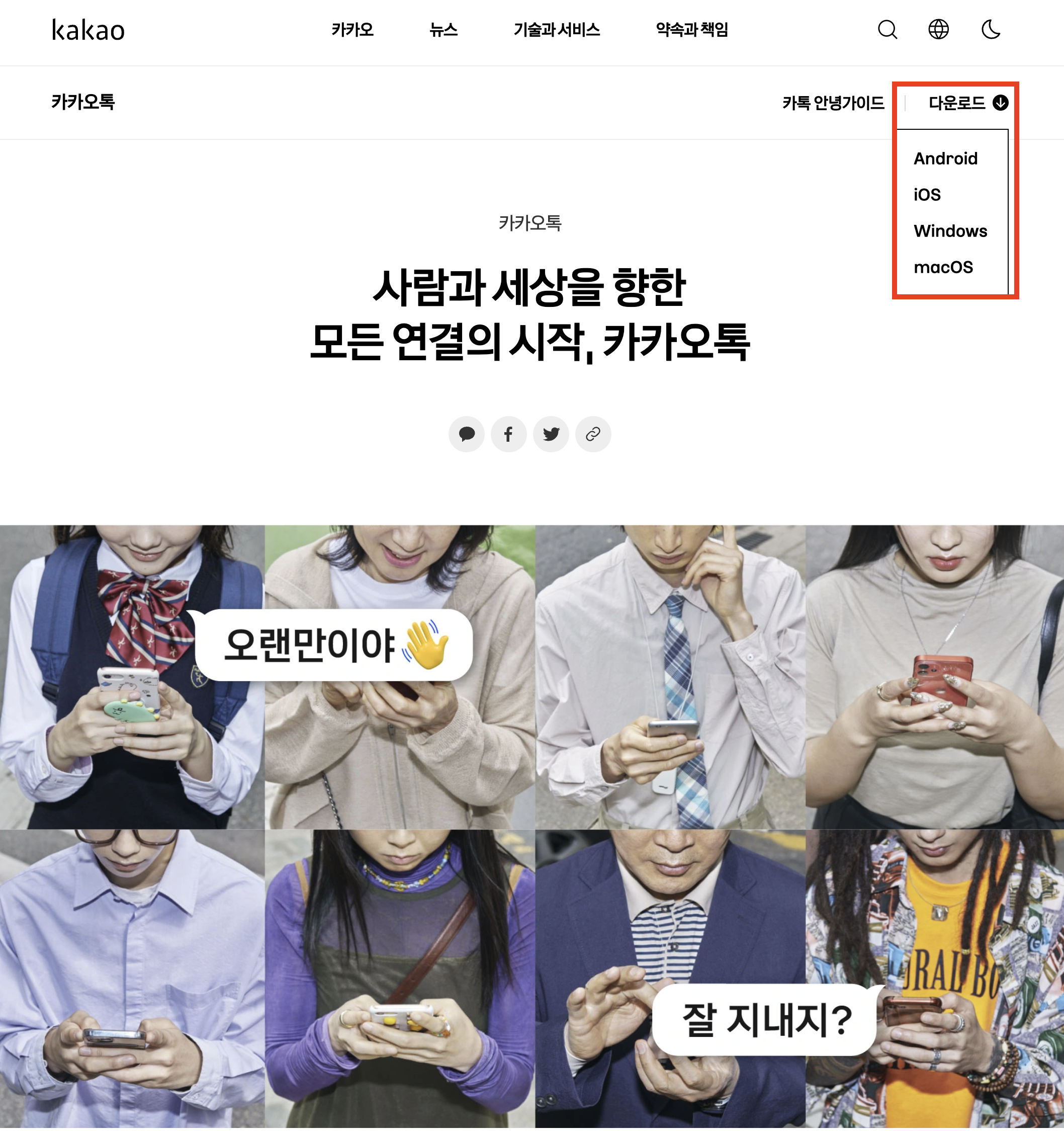 ์ฌ๋๊ณผ ์ธ์์ ํฅํ ๋ชจ๋ ์ฐ๊ฒฐ์ ์์, ์นด์นด์คํก