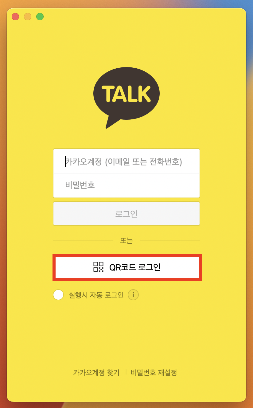 ํด๋ํฐ์ผ๋ก ์นด์นด์คํก์ ์ฃผ๋ก ์ด์ฉํ๋ค๋ณด๋ฉด ์์ด๋์ ๋น๋ฐ๋ฒํธ๋ฅผ ์์ด๋ฒ๋ฆฌ๋ ๊ฒฝ์ฐ๊ฐ ์์ต๋๋ค. ์ด๋ด ๋, PC๋ฒ์ ์ QR์ฝ๋ ์ค์บ์ ์ด์ฉํ์ฌ ์ฝ๊ณ ํธํ๊ฒ ๋ก๊ทธ์ธ์ ํ ์ ์์ต๋๋ค.