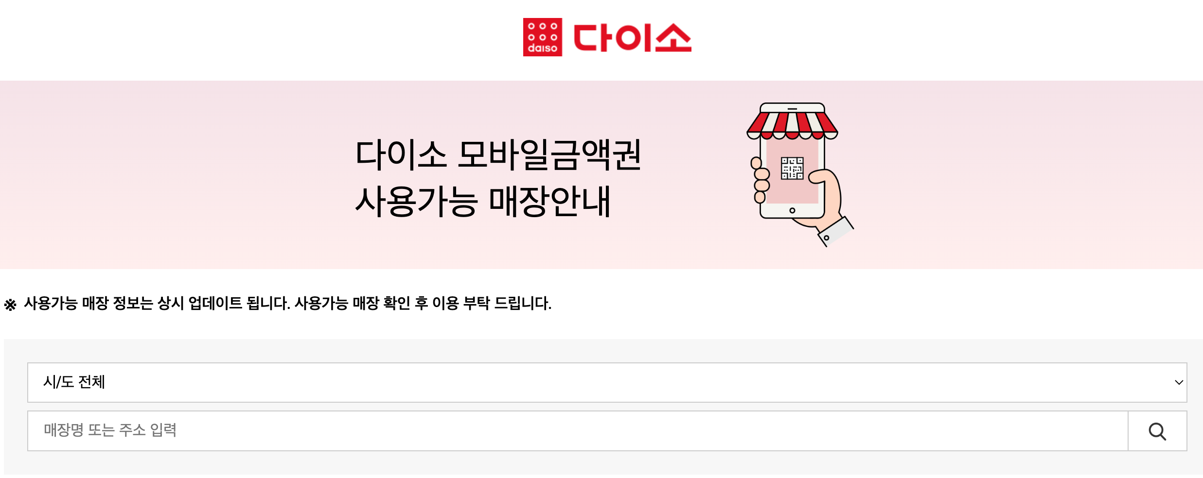 ์ผ๋ฐ˜ ๋‹ค์ด์†Œ ๋งค์žฅ์€ ๋‹ค์ด์†Œ ํ™ˆํŽ˜์ด์ง€์—์„œ ์ฐพ์œผ์‹ค ์ˆ˜ ์žˆ์ง€๋งŒ ๋‹ค์ด์†Œ ์ง์˜์ ์€ ๋‹ค์ด์†Œ ๋ชจ๋ฐ”์ผ ๊ธˆ์•ก๊ถŒ์„ ์‚ฌ์šฉํ•  ์ˆ˜ ์žˆ๋Š” ๋งค์žฅ์•ˆ๋‚ด์—์„œ ๋”ฐ๋กœ ํ™•์ธํ•˜์‹ค ์ˆ˜ ์žˆ์Šต๋‹ˆ๋‹ค.