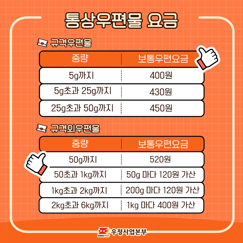 ์ค๋์ ์ฐ์ฒด๊ตญ์์ ์ด์ฉํ ์ ์๋ ์ฐํธ์๋น์ค์ ๋น์ฉ(ํธ์ง ๋น์ฉ) ๋ฐ ๋ฑ๊ธฐ์ ์ํฌ ๋ฐ์ก ๋น์ฉ์ ๋ํด ์์๋ณด์์ต๋๋ค. ํด๋น ์ ๋ณด๊ฐ ๋์์ด ๋์ จ๊ธฐ๋ฅผ ๋ฐ๋๋๋ค.
